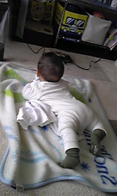 そしたら、床で腹ばいになってた次男(8カ月)が